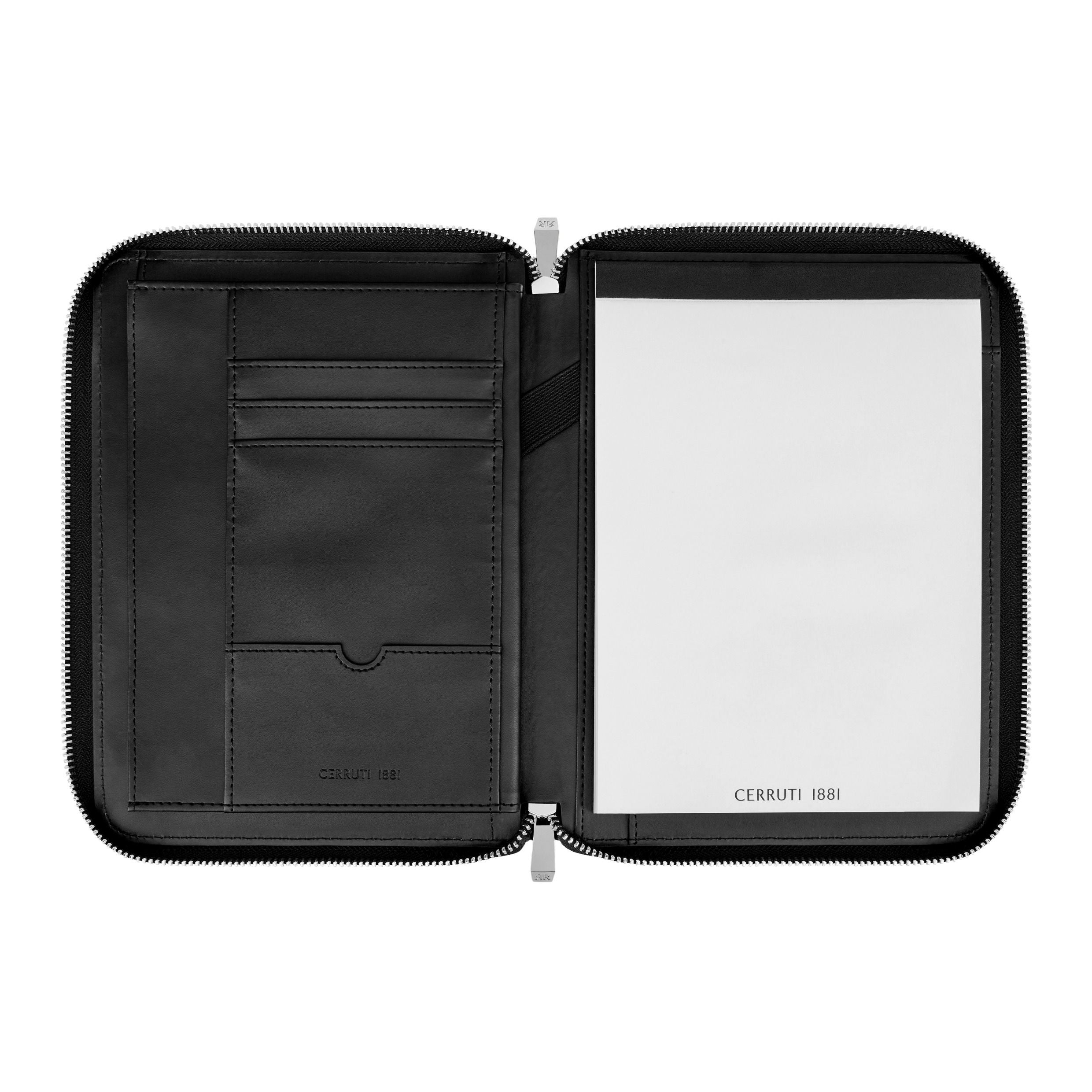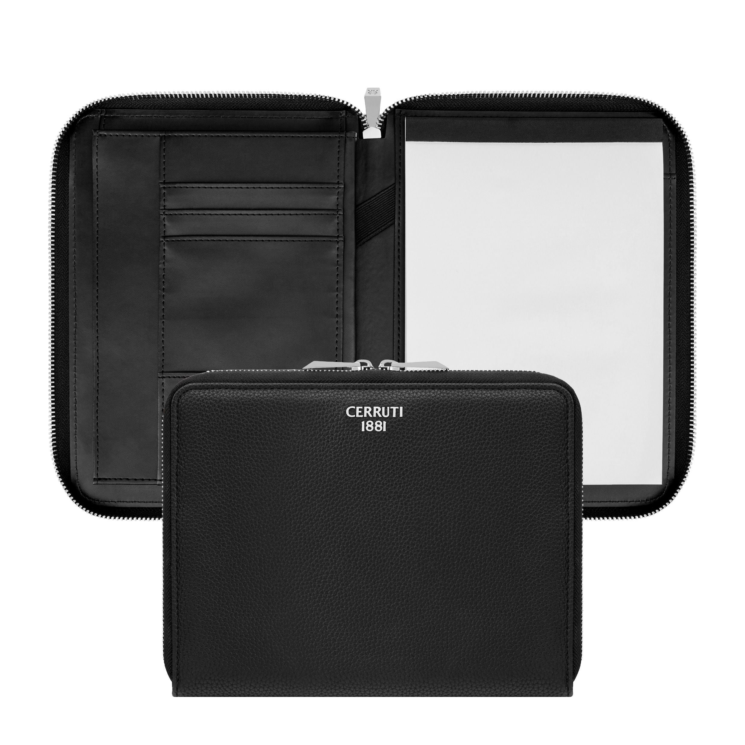 這款黑色傑佛遜書寫文件夾飾以鍍鉻飾邊,是實用書寫配件的經典優雅詮釋。它小巧簡約,與任何 Cerruti 1881 書寫工具都能完美搭配,精心挑選的霧面紋理賦予其精緻現代的觸感。奢華的鍍鉻金屬飾件提升了整體設計感,包括飾有全新 Cerruti 1881 銘牌的品牌標識以及刻有 RR 字樣的棱角分明的拉鍊頭,更添精緻細節。內部空間佈置巧妙,設有可收納卡片、常用物品和文件的風琴式隔層,以及用於放置筆的彈性筆槽。文件夾可替換 Cerruti 1881 簽名紙,打造一款經久耐用、精美絕倫的日常書寫伴侶。