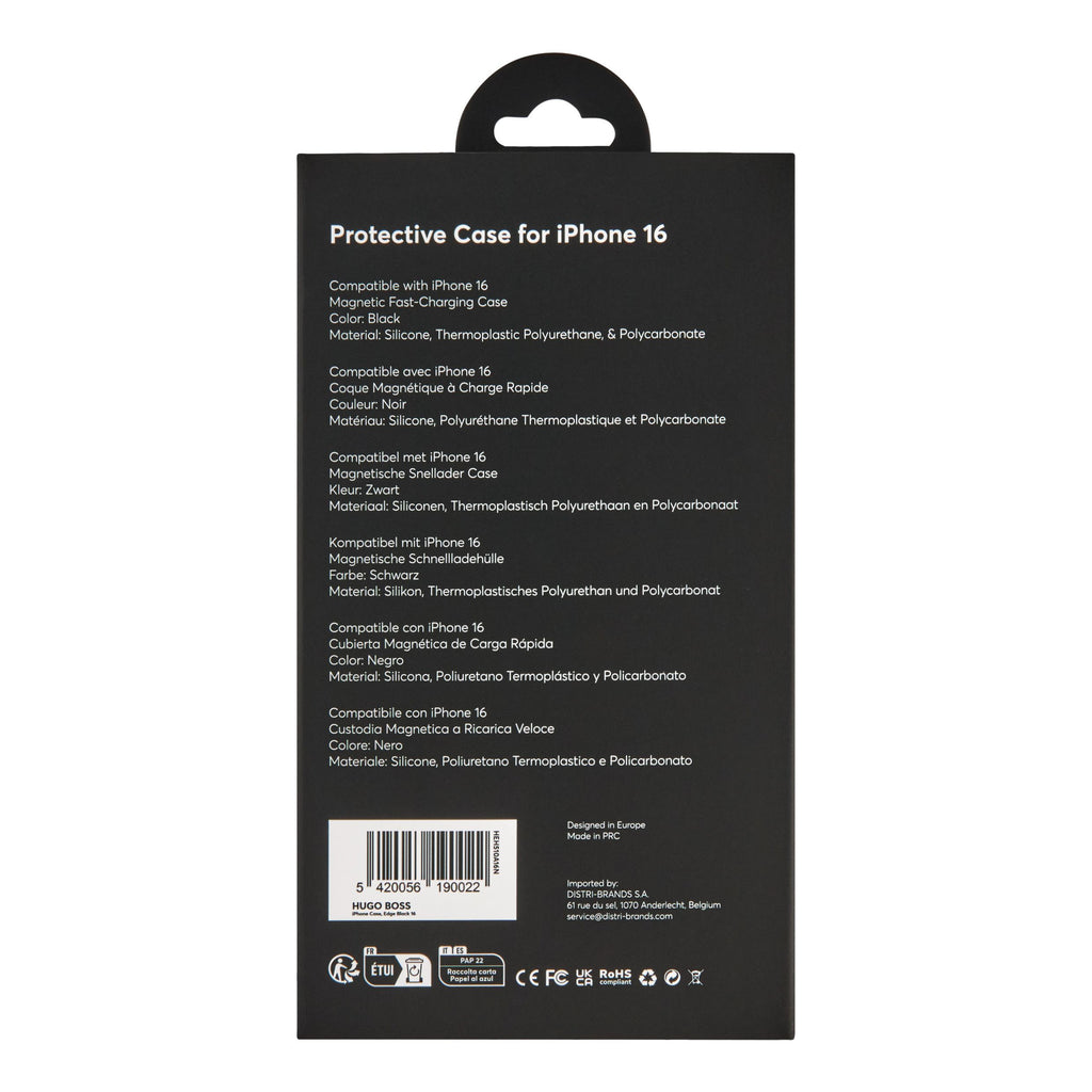 這款時尚簡約的手機殼採用黑色霧面紋理,飾有超大尺寸 BOSS 標誌浮雕,展現精緻優雅。它採用矽膠、TPU 和聚碳酸酯材質打造,經久耐用,並支援磁吸式快速充電。全單色設計,內側飾有低調的 BOSS 標誌,是為 iPhone 16 增添低調優雅氣質的完美配件。