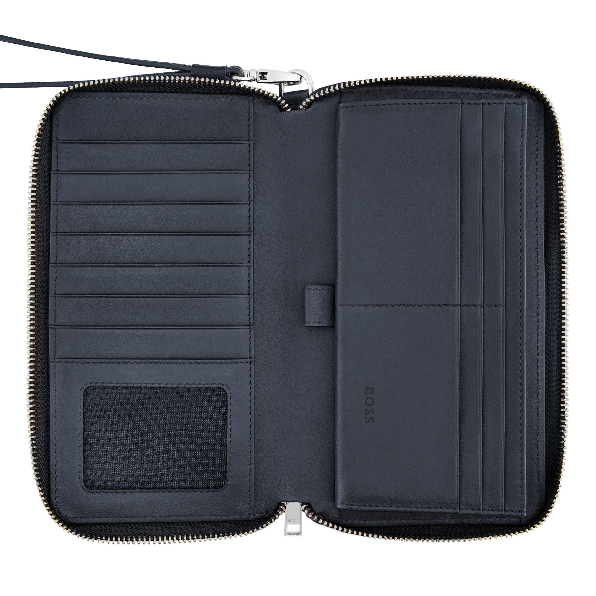 經典粒面系列採用精心挑選的頭層牛皮精製而成,簡約的設計彰顯雋永的精緻感。每件單品均經過精湛的組裝,並以清晰的鍍鉻標誌牌和字母圖案襯裡進行精美修飾,彰顯精湛的工藝。這款拉鍊皮夾擁有黑色、海軍藍和駝色可選,並配有全新 BOSS 簽名拉鍊頭,與飾邊完美融合。皮夾內部空間寬敞實用:左側設有 8 個卡位和一個大隔層,右側則可用作全功能錢包,配備雙側夾層、一個大拉鍊零錢隔間、12 個卡位和一個額外的紙幣隔間。兼具實用性和奢華感,為日常必需品提供優雅的解決方案。