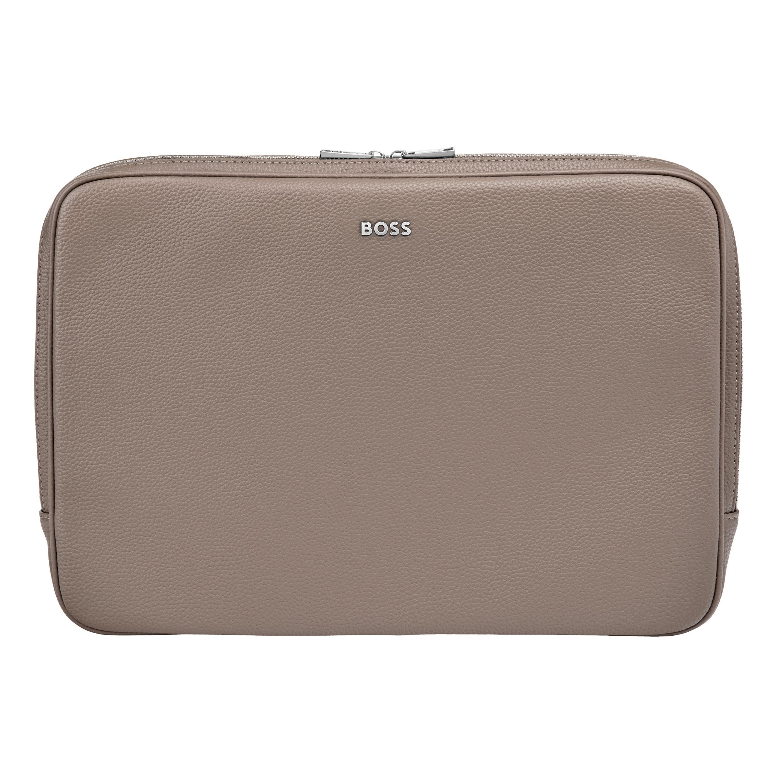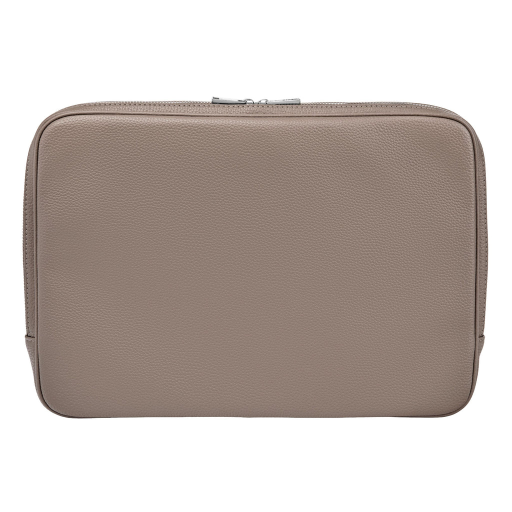 Grained Classic 電腦內膽包採用柔軟的粒面皮革紋理製成,並飾有清爽的鍍鉻標誌牌和配套的鍍鉻拉鍊。內襯採用同色系字母印花,展現精緻的質感。內膽包採用多個隔層設計,可妥善收納筆、文件、線、卡片或手機等各種物品。有黑色、海軍藍、卡其色和灰褐色可選。